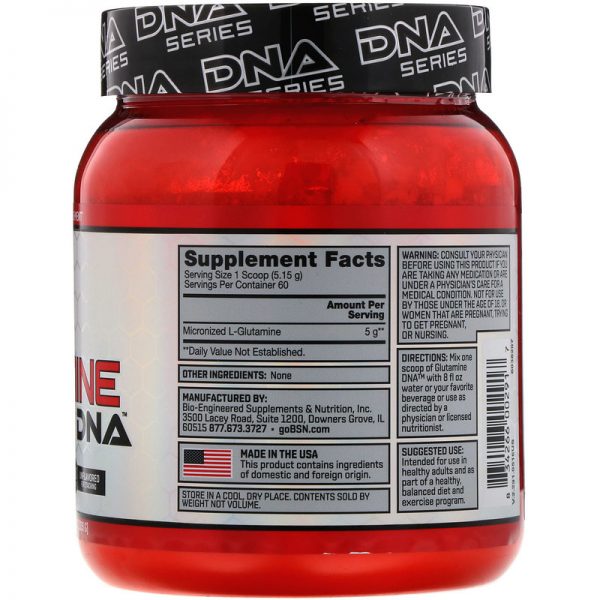 Because supplemental L-Glutamine may help support recovery post-exercise, each serving of BSN Glutamine DNA provides 5 grams of micronized L-Glutamine. Glutamine DNA is unflavored, providing versatility to add your post-workout protein shake or favorite beverage.