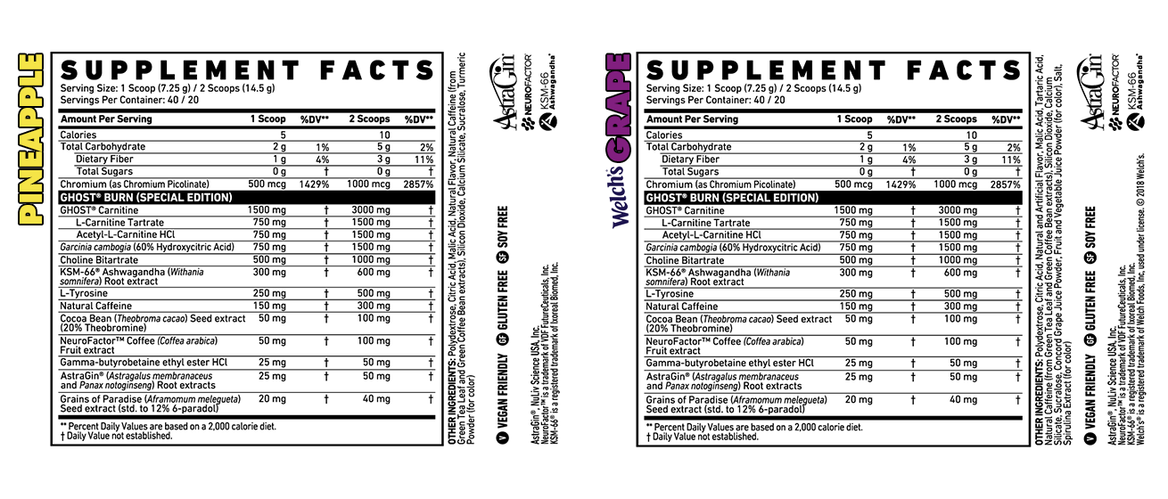 This limited edition GHOST® Burn is packing a LEGIT 1.5g dose of Garcinia Cambogia (3x what you normally see from other brands), shown to aid in appetite suppression and overall satiety!