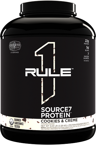 Rule1 Source7 Protein brings together seven premium proteins, decadent flavor, and velvety smooth texture in an easy-to-mix shake. Its exceptionally great taste – inspired by creamy gelato – is complemented by 22g of protein from a blend of faster, moderate, and slower digesting sources.
