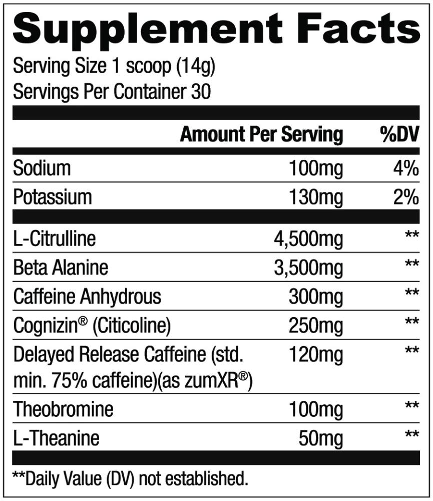 • 3.5G of Beta Alanine to push through muscle fatigue