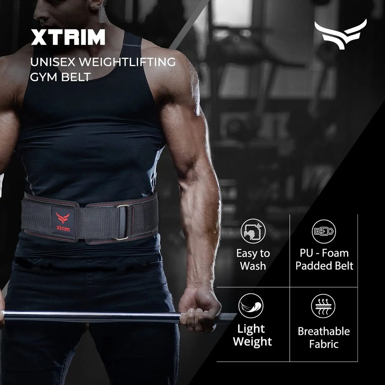The Xtrim Sports Weightlifting Belt features a 4-inch width and is available in various sizes to accommodate different waist measurements. The belt is constructed using a combination of materials, including EVA foam, PU leather, and polyester mesh, ensuring a balance between support and flexibility. It is equipped with a self-locking buckle mechanism for secure fastening during intense workouts.